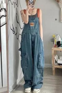 Home>Women' Fashion>Women's Bottoms>Jumpsuits & Rompers >Women's Retro Loose High Waist Street Fashion Tooling Casual Young Denim Jumpsuit