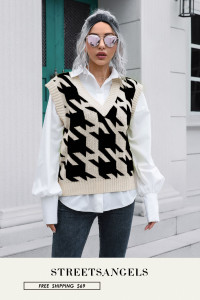 Women's Sleeveless V-Neck Plaid Casual Fashion  Sweater Vests