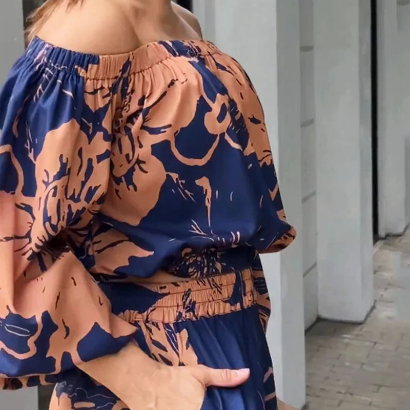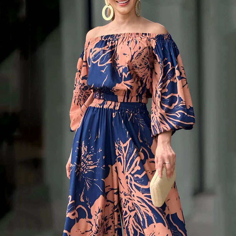 Women's Two-piece Fashion Casual Printed Off-Shoulder Wide-Leg Pants Set